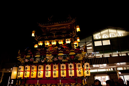 両日とも やすがわ通りを祭り行列が通り、14日の夜は提灯に灯りを点した屋台が曳き揃えられます。(雨天中止。)