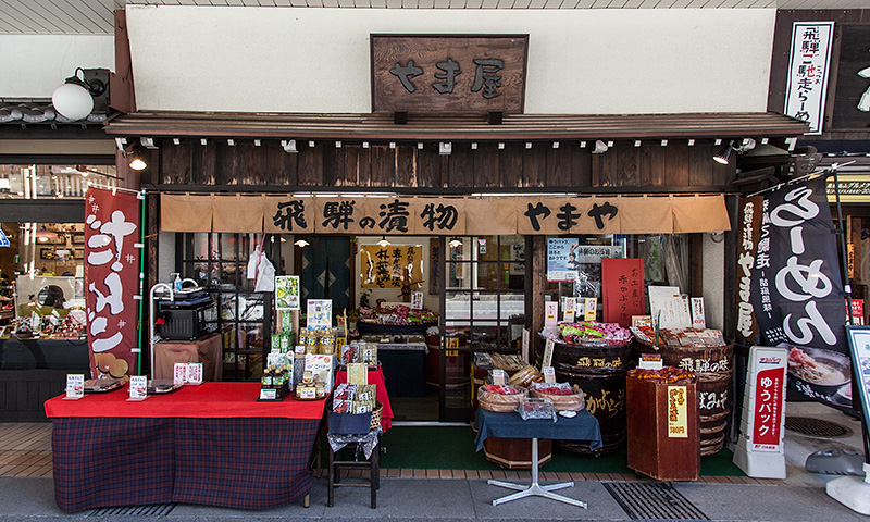かじ橋の近くで、飛騨名産 赤かぶの漬物・朴葉みそを中心に たくあん・ごぼうの漬物などを販売しています。